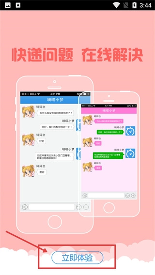 1、在快遞的介紹頁面,點(diǎn)擊【立即體驗(yàn)】按鈕,進(jìn)入主界面。