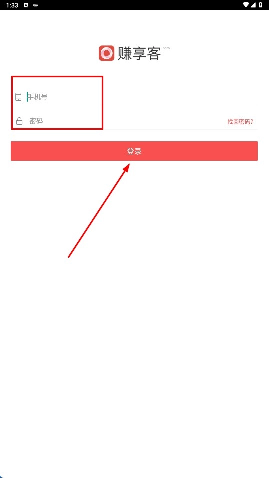 1、進(jìn)入賺享客登錄頁(yè)面,輸入手機(jī)號(hào)與密碼,隨后點(diǎn)擊【登錄】功能按鈕。