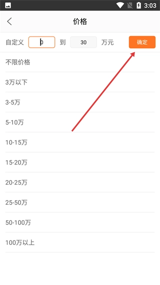 3、在價(jià)格設(shè)置界面自定義價(jià)格區(qū)間后,點(diǎn)擊【確定】按鈕。