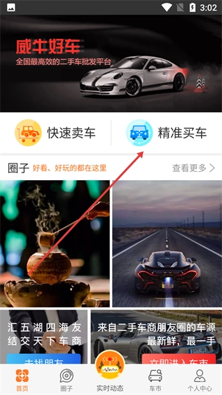 1、點(diǎn)擊【精準(zhǔn)買車】選項(xiàng),即可進(jìn)入收車神器界面。