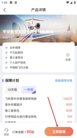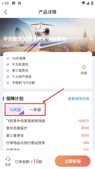 3、在產(chǎn)品詳情頁(yè)面選擇保障計(jì)劃,如【一年版】。