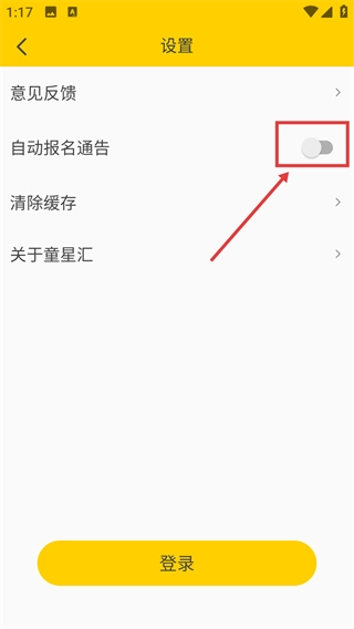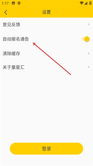 3、在設(shè)置頁面找到【自動報名通告】開關(guān)。