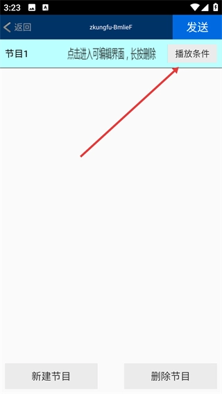 2、在節(jié)目管理界面點(diǎn)擊【播放條件】選項(xiàng),進(jìn)入配置界面。