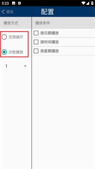 3、在配置界面的播放方式中選擇【無限循環(huán)】。