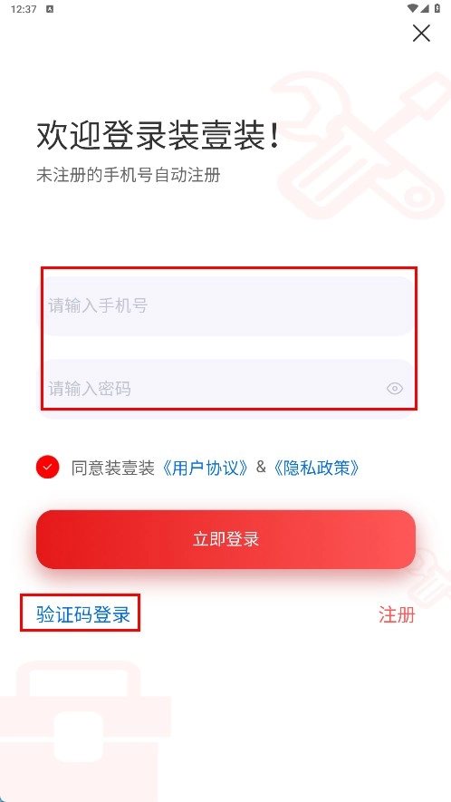 3、進(jìn)入登錄界面,可輸入手機(jī)號(hào)和密碼點(diǎn)擊【立即登錄】,也可選擇【驗(yàn)證碼登錄】。