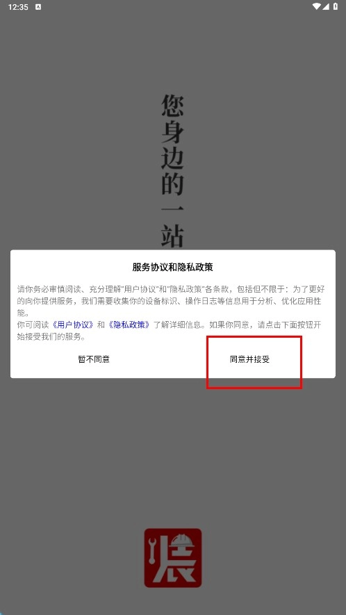 1、進(jìn)入服務(wù)協(xié)議與隱私政策頁(yè)面后,點(diǎn)擊【同意并接受】功能按鈕,即可進(jìn)入身份選擇界面。