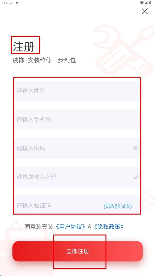4、進(jìn)入注冊(cè)界面,填寫姓名、手機(jī)號(hào)、密碼等信息,點(diǎn)擊【立即注冊(cè)】完成注冊(cè)。