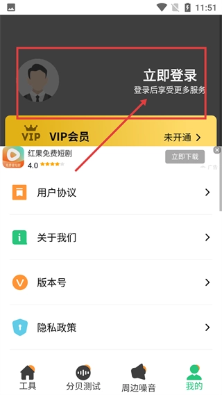 2、在“我的”頁面,點擊“立即登錄”區(qū)域,進入登錄注冊流程。