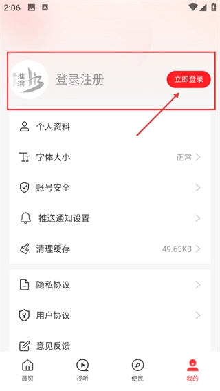 2、在個人中心頁面,點擊【立即登錄】按鈕,進入登錄界面,準備進行賬號登錄操作。