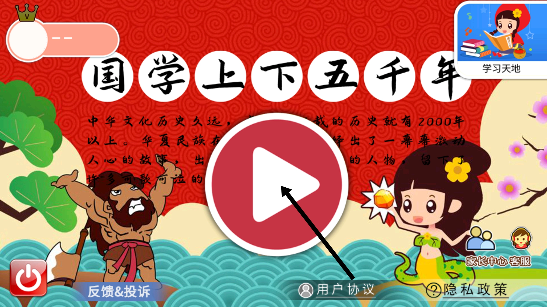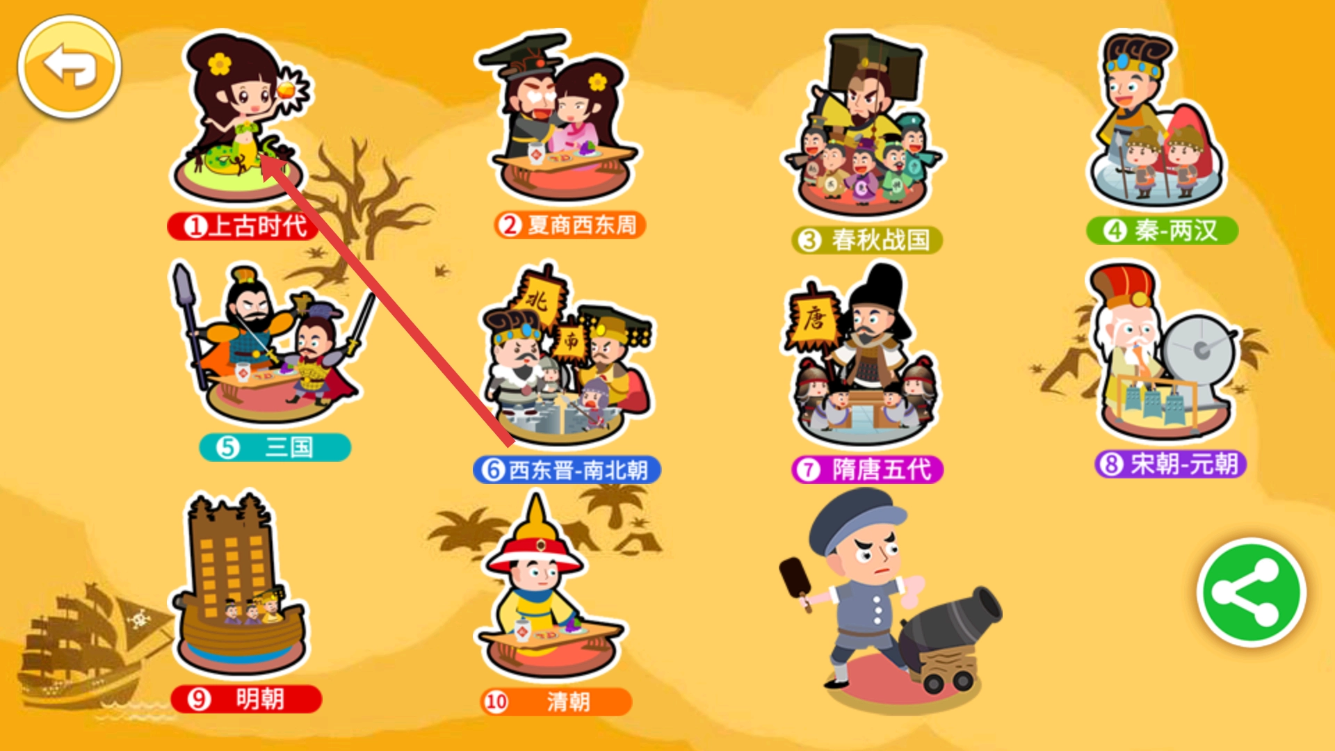 1、在國學(xué)上下五千年的首頁,點擊播放按鈕,即可進入歷史朝代選擇頁面。