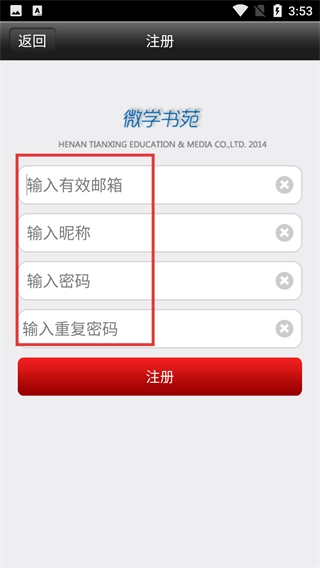 3、在注冊頁面填寫有效郵箱、昵稱、密碼和重復(fù)密碼。