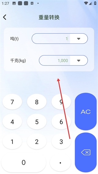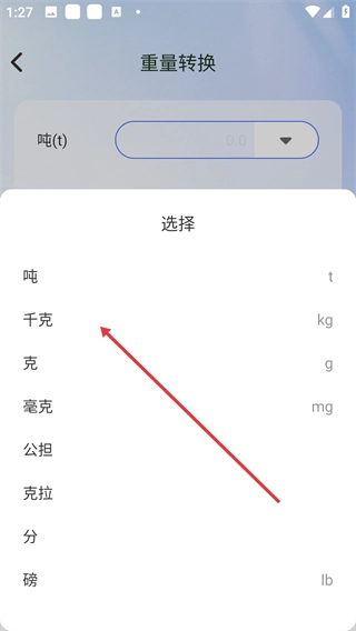 3、在重量轉(zhuǎn)換界面選擇目標(biāo)單位,如【千克】。