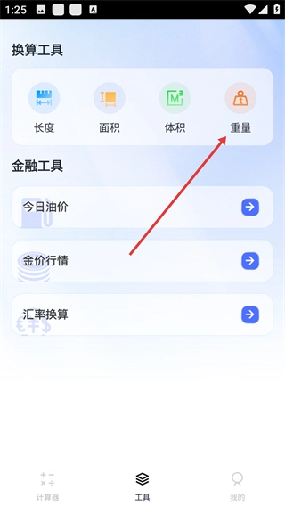 2、在工具界面點(diǎn)擊【重量】換算工具。