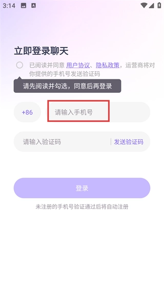 1、請(qǐng)勾選【已閱讀并同意用戶(hù)協(xié)議、隱私政策】這一選項(xiàng),隨后輸入您的手機(jī)號(hào)碼。