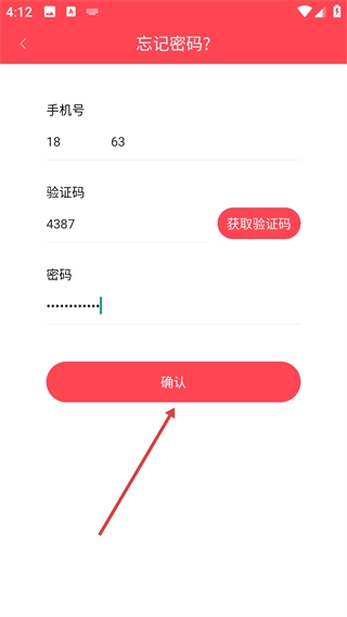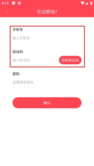 2、在忘記密碼頁面輸入手機號碼和驗證碼。
