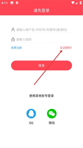 1、點擊【忘記密碼?】選項,即可進入忘記密碼頁面。