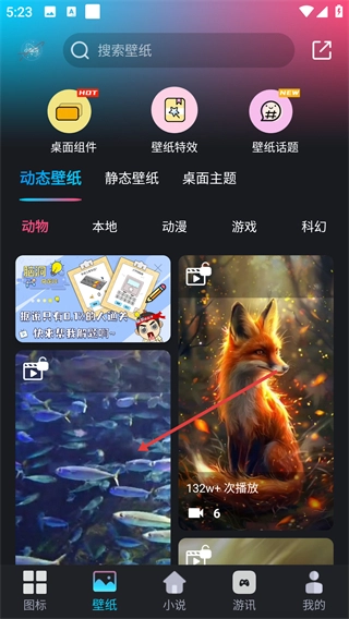 1、點擊底部的【壁紙】選項,即可進入壁紙選擇界面。