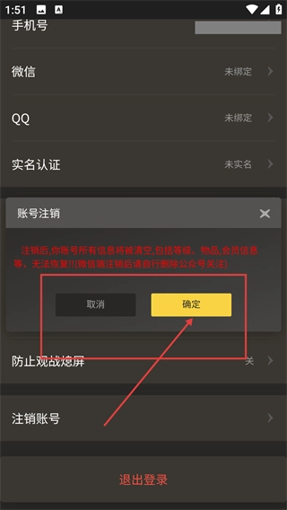 4、點(diǎn)擊【注銷賬號(hào)】后,會(huì)彈出確認(rèn)彈窗,提示注銷后賬號(hào)信息將清空且無法恢復(fù),點(diǎn)擊【確定】即可完成賬號(hào)注銷操作。
