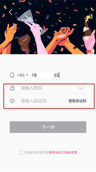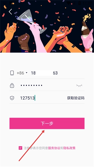 4、勾選同意服務(wù)協(xié)議和隱私政策后,點(diǎn)擊【下一步】按鈕,完成注冊(cè)流程。