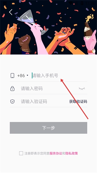 2、在注冊(cè)信息填寫界面輸入手機(jī)號(hào)。
