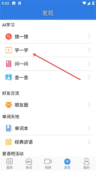 2、在發(fā)現(xiàn)界面點(diǎn)擊【學(xué)一學(xué)】選項(xiàng),進(jìn)入學(xué)習(xí)內(nèi)容界面。