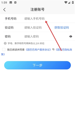 2、在注冊頁面輸入手機號碼。