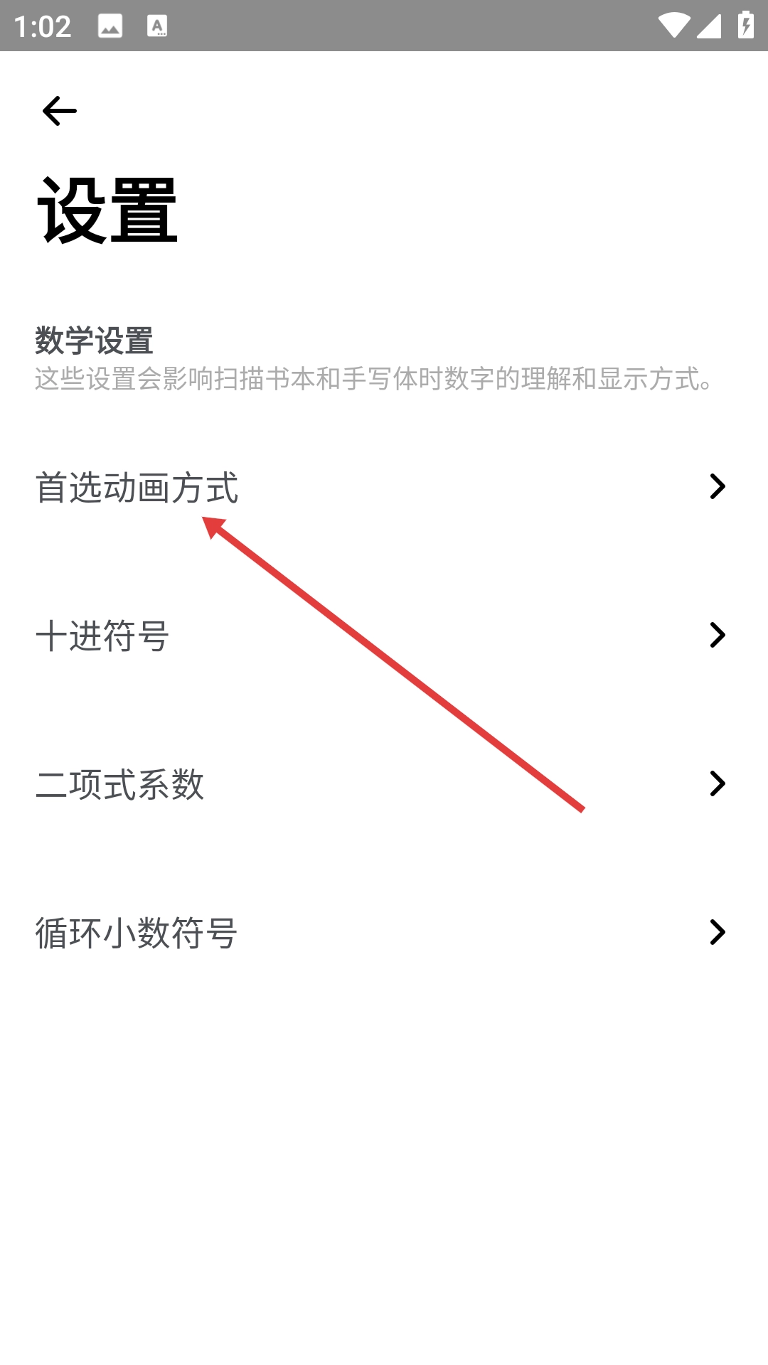 3、在設(shè)置頁(yè)面點(diǎn)擊【首選動(dòng)畫方式】,進(jìn)入首選動(dòng)畫方式設(shè)置頁(yè)面。
