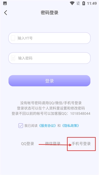 3、在登錄界面,選擇【手機號登錄】方式,進入手機號驗證頁面。