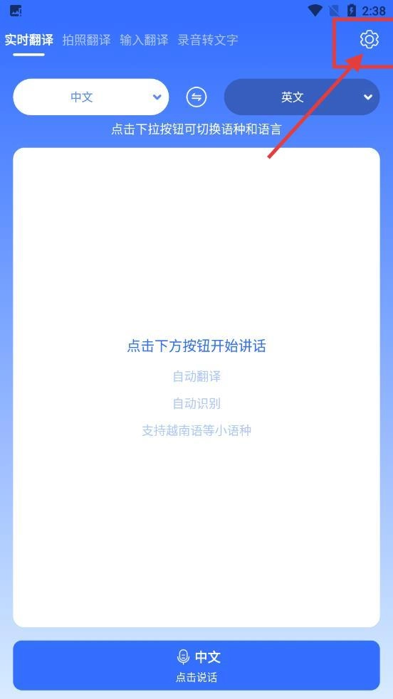 2、在軟件主界面,點(diǎn)擊右上角的設(shè)置圖標(biāo),可進(jìn)入設(shè)置界面,進(jìn)行語言切換等相關(guān)功能設(shè)置。