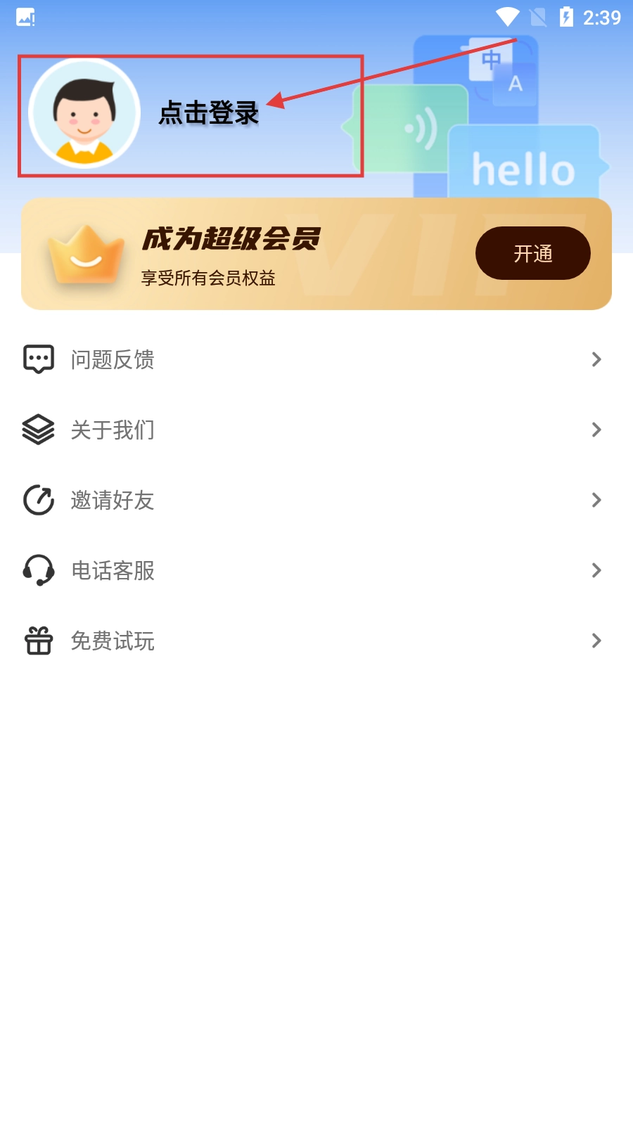 3、在個(gè)人中心界面,點(diǎn)擊【點(diǎn)擊登錄】區(qū)域,可進(jìn)入登錄流程,以便享受更多軟件服務(wù)。