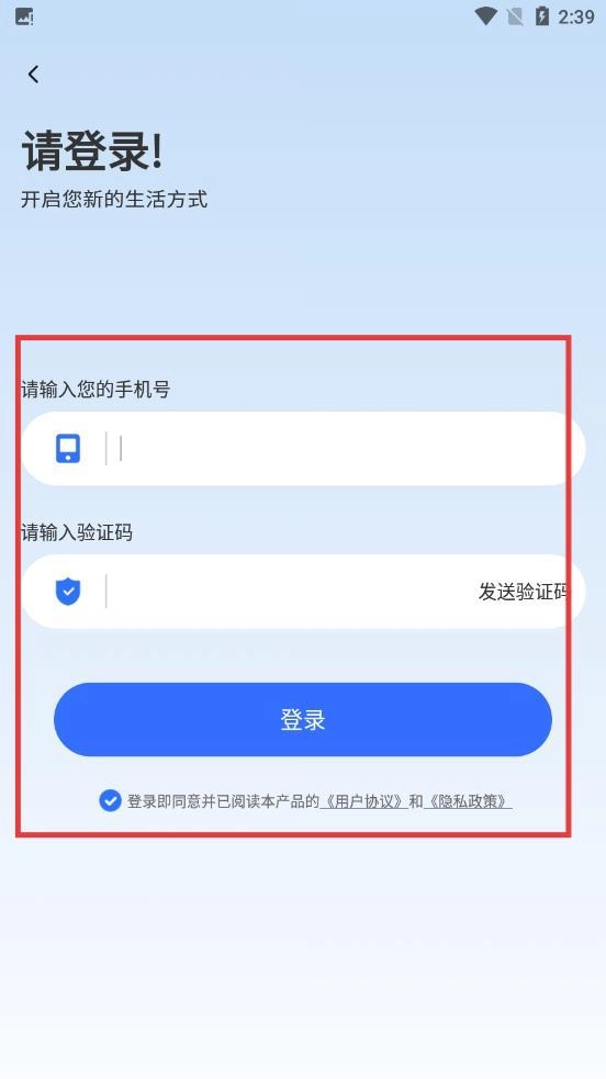 4、在登錄界面,依次輸入【手機(jī)號】、獲取并輸入【驗(yàn)證碼】,然后點(diǎn)擊【登錄】按鈕,即可完成登錄操作。