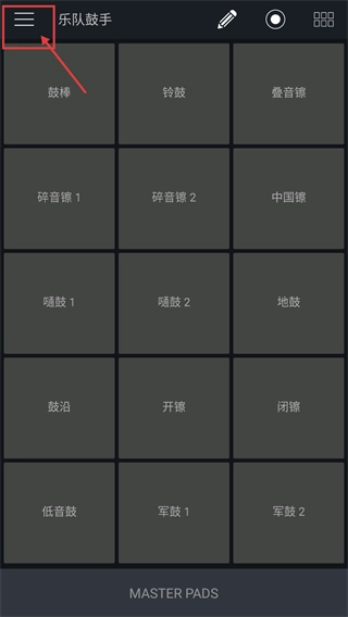 2、進入打擊墊大師主界面后,點擊左上角三條橫線的菜單按鈕,可展開功能菜單。