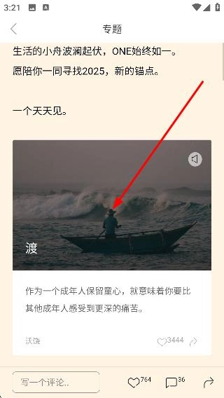 3、在專題列表中選擇目標(biāo)專題內(nèi)容,如“渡”。