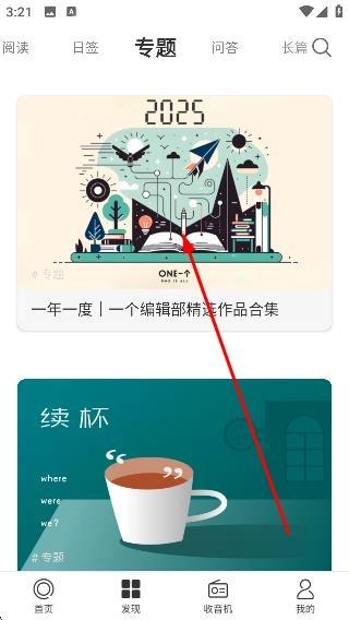 2、在發(fā)現(xiàn)頁面選擇【專題】分類,查看該分類下的專題內(nèi)容。