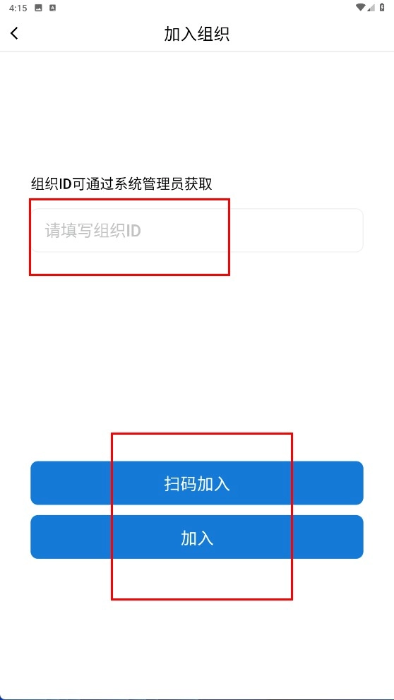4、進入加入組織頁,填寫【組織ID】后,可選擇掃碼加入或點擊加入按鈕完成注冊流程。