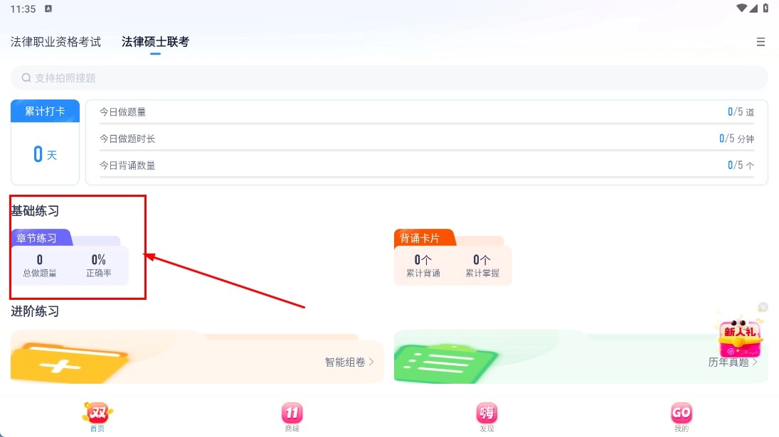 1、點擊【基礎(chǔ)練習-章節(jié)練習-功能選項】,即可進入章節(jié)練習頁面。