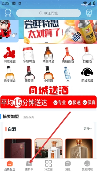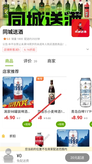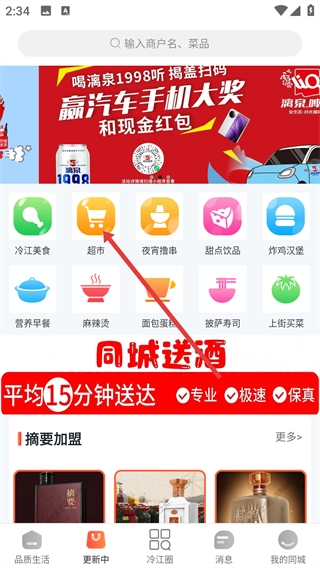 3、在超市商家列表中點(diǎn)擊【同城送酒】店鋪,進(jìn)入該店鋪詳情頁。