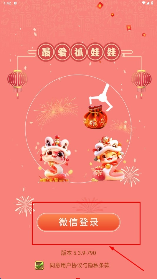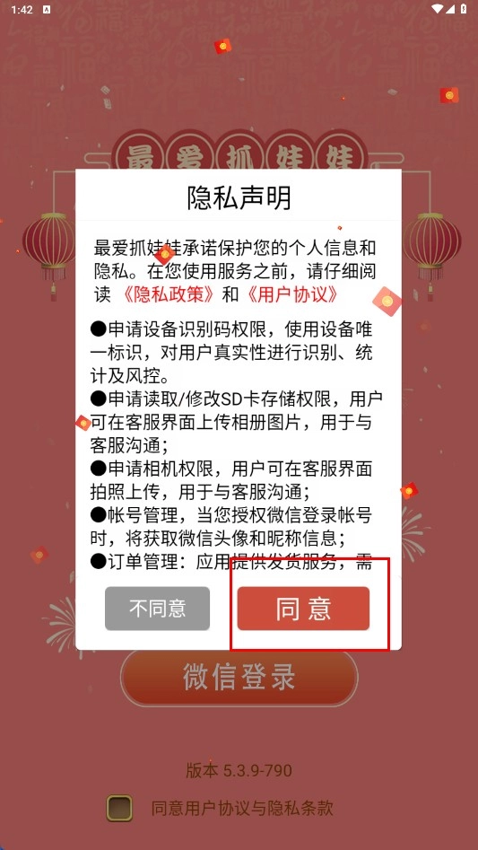 1、點(diǎn)擊【同意-功能按鈕】,即可進(jìn)入最愛(ài)抓娃娃的登錄頁(yè)面。