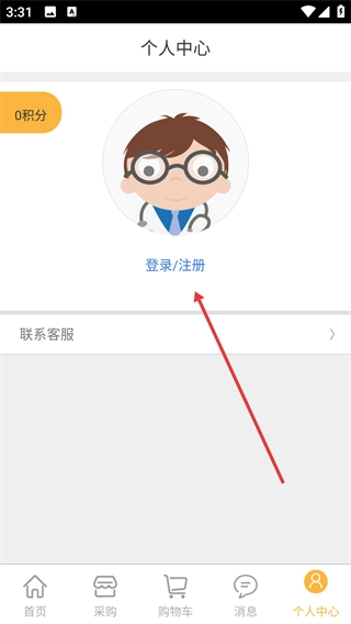 1、進入個人中心頁面后,點擊【登錄/注冊】按鈕,即可跳轉(zhuǎn)至微藥的登錄界面。