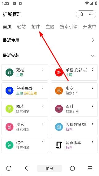 1、點擊【插件】選項,即可進入插件管理頁面。