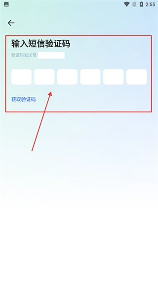 4、進(jìn)入短信驗(yàn)證碼輸入界面后,在對應(yīng)輸入框中輸入收到的短信驗(yàn)證碼,完成登錄注冊操作。