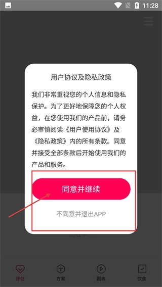 1、打開應(yīng)用后會出現(xiàn)【用戶協(xié)議及隱私政策】的彈窗,點(diǎn)擊同意按鈕就能進(jìn)入應(yīng)用的主界面。