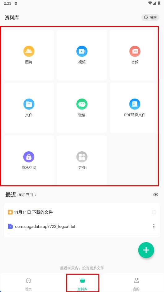 4、點(diǎn)擊底部【資料庫-功能按鈕】,可查看圖片、視頻、音頻等各類文件分類進(jìn)行修復(fù)。