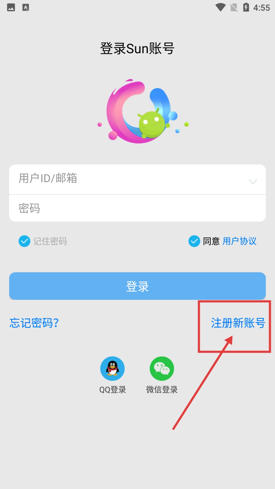 3、在登錄界面,若需注冊賬號,點(diǎn)擊【注冊新賬號】按鈕,進(jìn)入注冊流程。