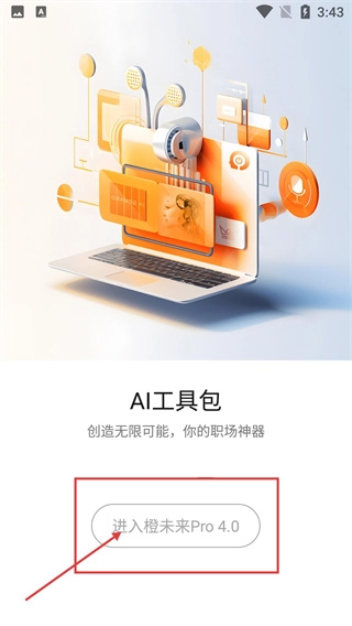 2、在AI工具包介紹頁面,點(diǎn)擊“進(jìn)入橙未來Pro 4.0”按鈕,進(jìn)入應(yīng)用的登錄流程。