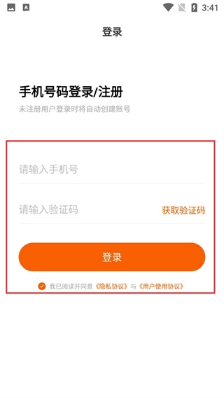 3、在登錄頁面,選擇手機(jī)號碼登錄/注冊方式,輸入手機(jī)號、獲取并填寫驗(yàn)證碼,點(diǎn)擊“登錄”完成賬號登錄。