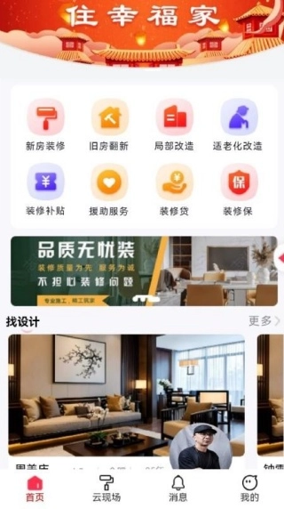 3. 在主頁(yè)面即可看到新房裝修、舊房翻新、局部改造等功能;