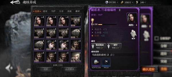 消耗低品質(zhì)魂核:提升當(dāng)前魂核等級屬性